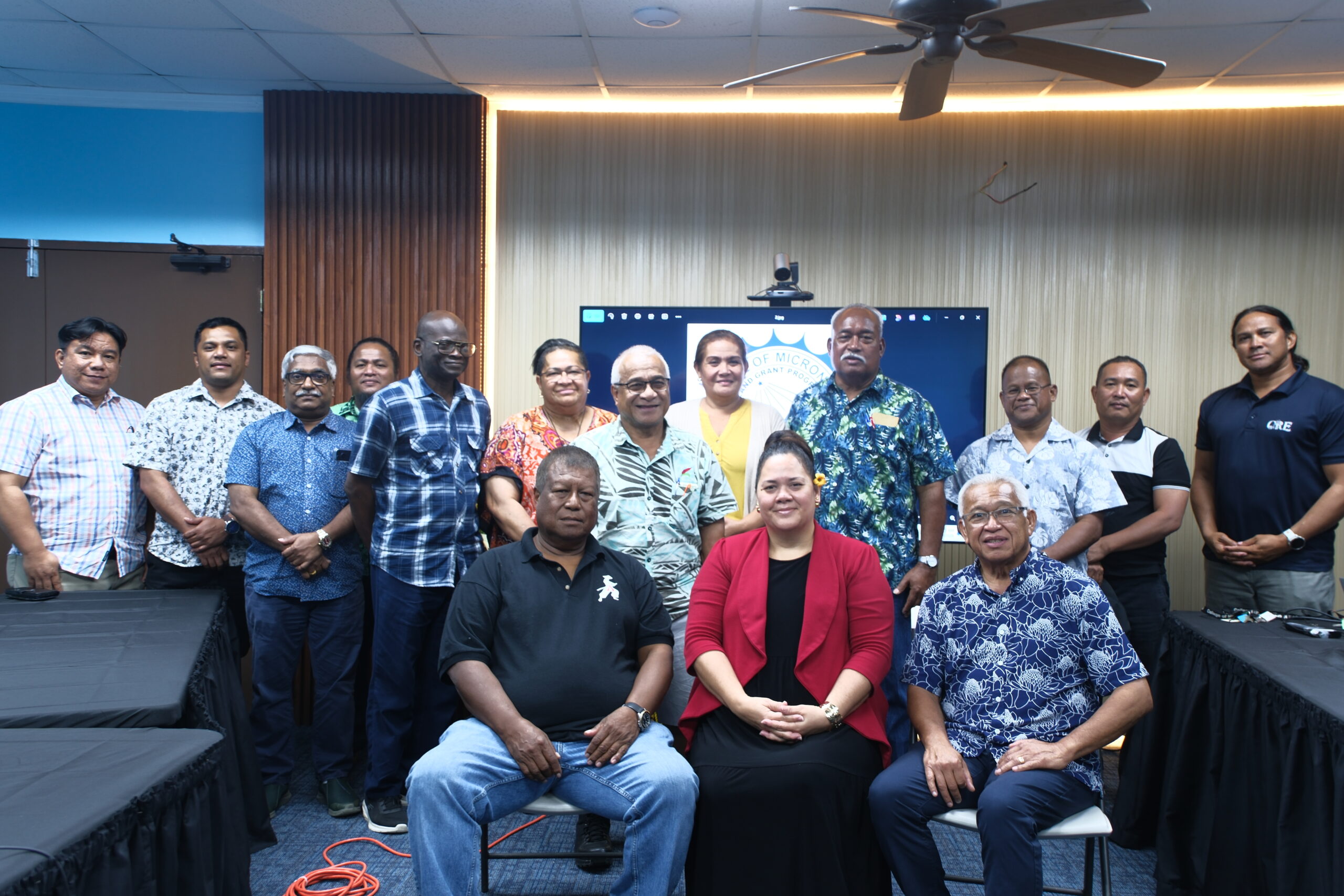 Sitting from Left to Right (front row) Chairman of the Board of Regents, Dr. Emails Robert of ROP, Vice Chair of COMLG Board of Regents to the FSM, Suzann L. Gallen, CMI Board of Regents, Hon. Gerald Zackios. Second Row in the back from Right to left, Dr. Cristopher Kitalong, PCC-CRE VP, Mr. Steven Young, COMFSM-CRE-VP, Stanley Lorennij, COMLG Executive Director (Central Office), PCC – President, Dr. Patrick Telley, Incomming Board of Regents, Mrs. Lynn Sonden of COMFSM, Associate Director – CES, Engly Ioanis, COMFSM-President, Dr.Theresa Koroivulaono, CMI-CRE VP, Dr. Adedayao Ogunmokun, Dr. Murukesan Krishnapillai, Researcher/Extension YAP CRE and CMI-CRE personnel and CFO of COMLG-Central Office.