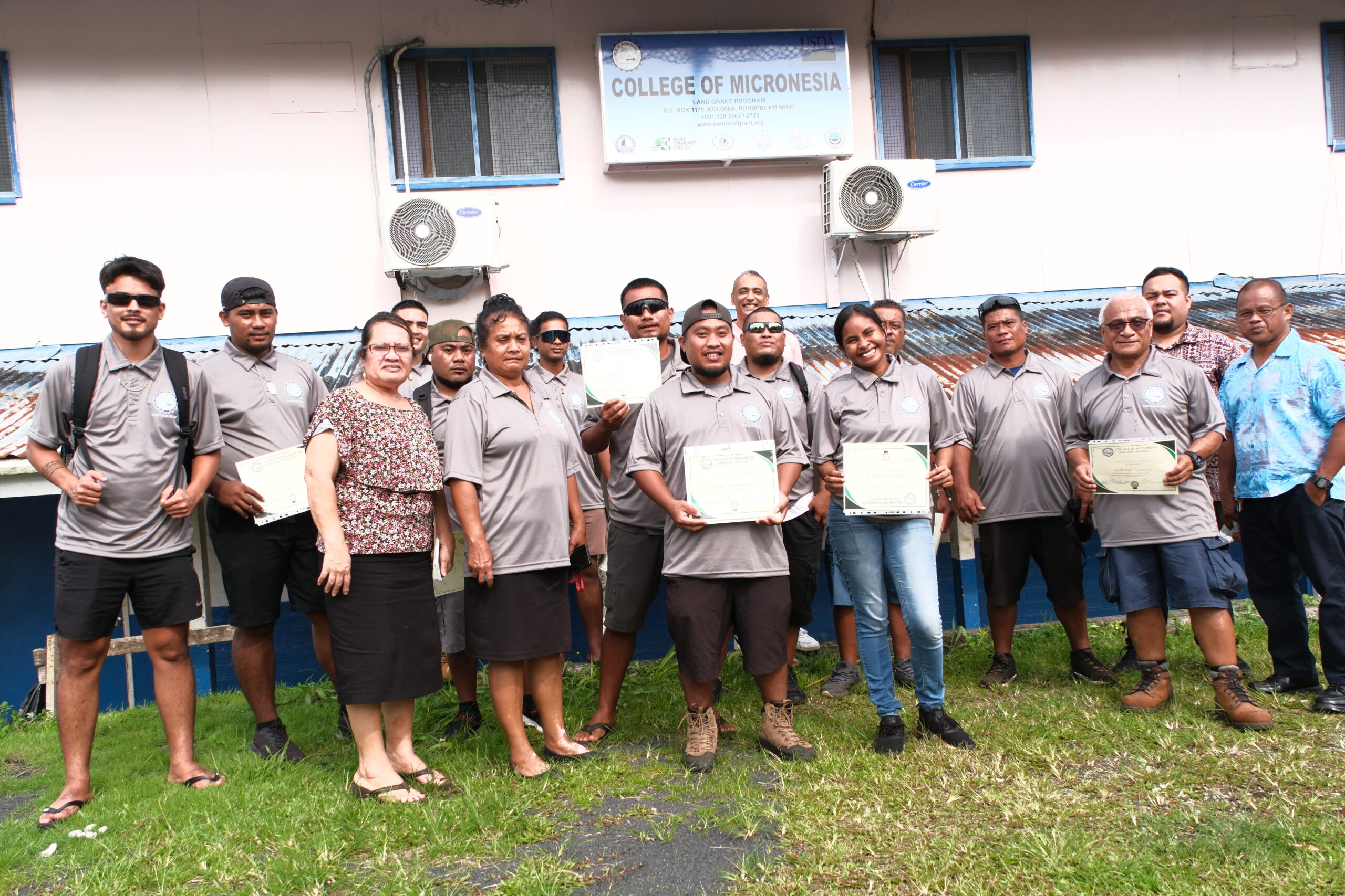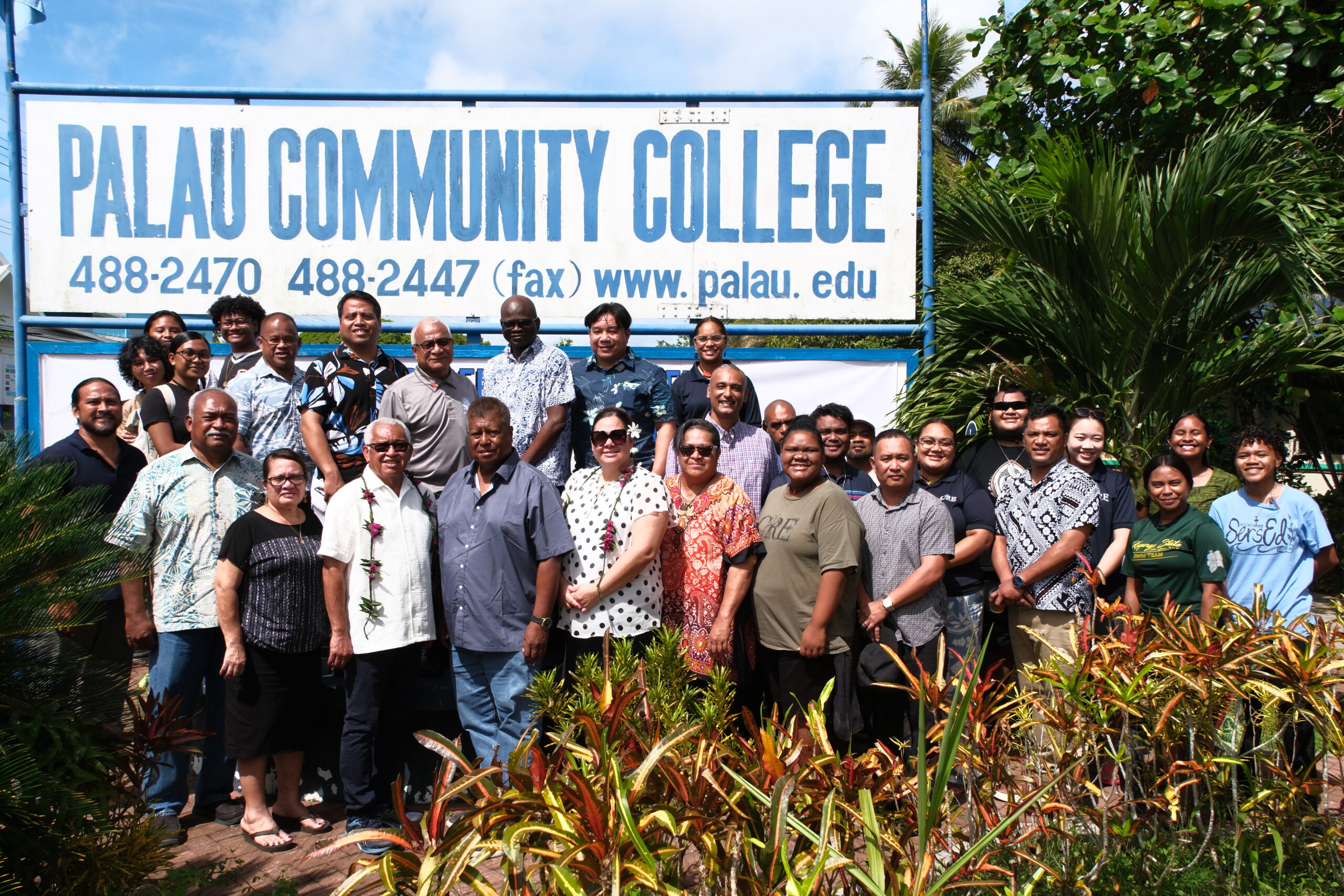 Sitting from Left to Right (front row) Chairman of the Board of Regents, Dr. Emails Robert of ROP, Vice Chair of COMLG Board of Regents to the FSM, Suzann L. Gallen, CMI Board of Regents, Hon. Gerald Zackios. Second Row in the back from Right to left, Dr. Cristopher Kitalong, PCC-CRE VP, Mr. Steven Young, COMFSM-CRE-VP, Stanley Lorennij, COMLG Executive Director (Central Office), PCC – President, Dr. Patrick Telley, Incomming Board of Regents, Mrs. Lynn Sonden of COMFSM, Associate Director – CES, Engly Ioanis, COMFSM-President, Dr.Theresa Koroivulaono, CMI-CRE VP, Dr. Adedayao Ogunmokun, Dr. Murukesan Krishnapillai, Researcher/Extension YAP CRE and CMI-CRE personnel and CFO of COMLG-Central Office.